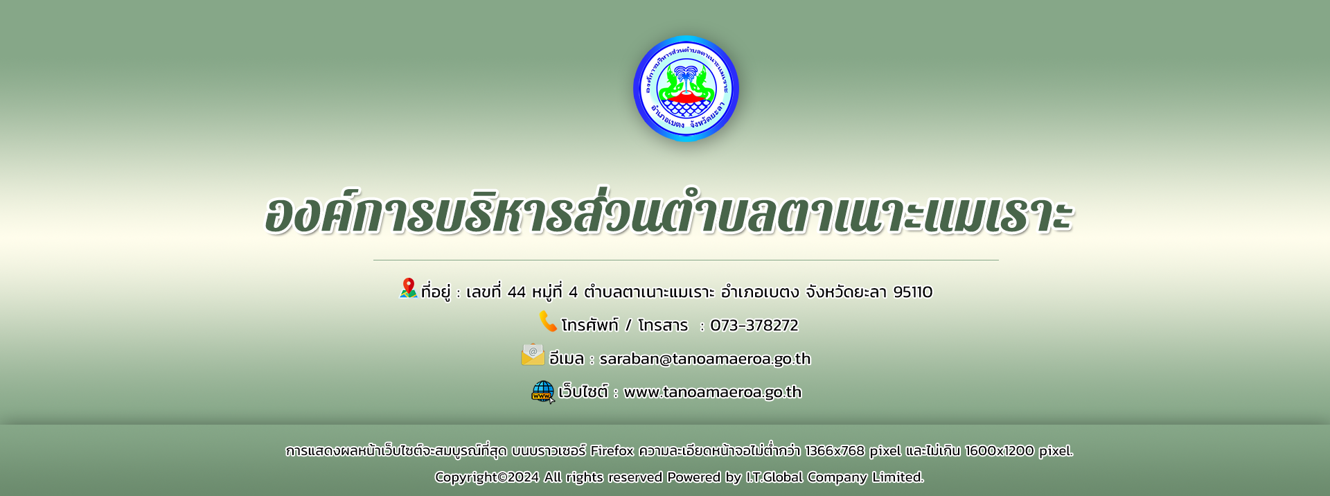 ยินดีต้อนรับเข้าสู่องค์การบริหารส่วนตำบลตาเนาะแมเราะ ติดต่อสอบถาม โทรศัพท์ : 073-378272 โทรสาร : 073-378272 Email: saraban@tanoamaeroa.go.th